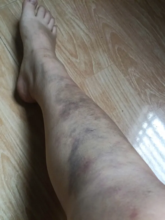 Vết trầy xước, bầm tím mới đè lên vết cũ. Ảnh: Minh Tuấn