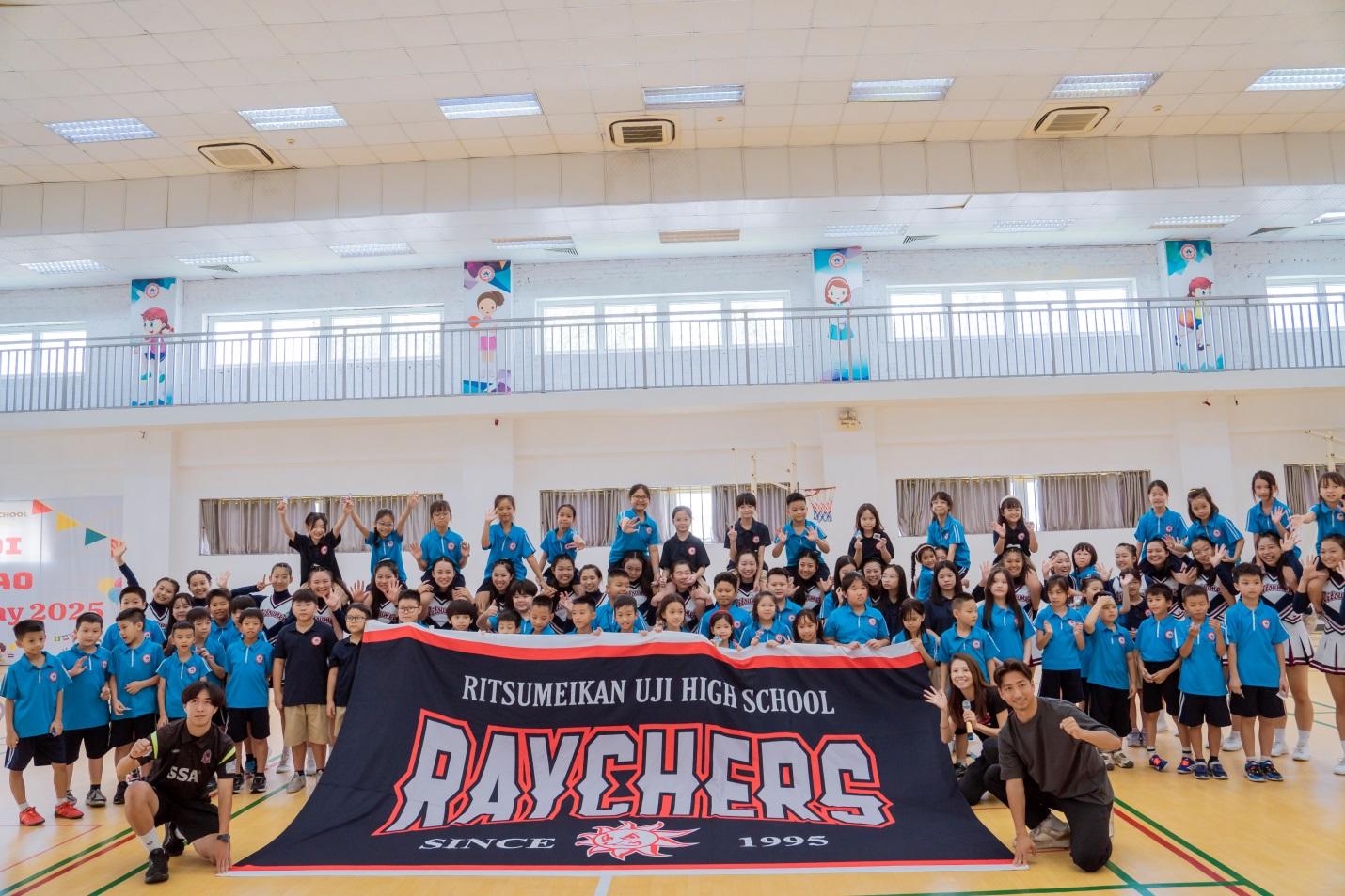 Trong buổi chào đón Câu lạc bộ Cheerleading đến từ Trường THPT Ritsumeikan Uji – ngôi trường danh tiếng tại Nhật, các em học sinh Trường Quốc tế Nhật Bản vô thích thú và hào hứng. Khi đội Cheerleading của trường Ritsumeikan Uji biểu diễn, cả khán phòng như bùng nổ trong tiếng vỗ tay và reo hò cổ vũ cho những bước nhảy mạnh mẽ, những cú nhào lộn uyển chuyển cùng tinh thần đồng đội tuyệt vời.
