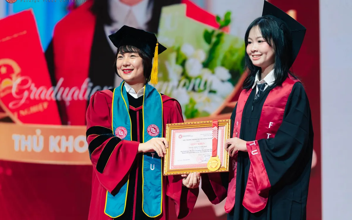 Đặc biệt, trong số các tân cử nhân được vinh danh lần này, có 2 thủ khoa đạt điểm số tuyệt đối 4.0/4.0 là Hoàng Thị Minh Hạnh (Chương trình tiên tiến Kinh tế đối ngoại) và Nguyễn Khánh An (Chương trình Luật Kinh doanh quốc tế theo mô hình thực hành nghề nghiệp).