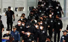 Các công dân Hàn Quốc liên quan hoạt động lừa đảo sử dụng công nghệ được bàn giao tại sân bay quốc tế ở thủ đô Phnom Penh, Vương quốc Campuchia, tối 17/10/2025. (Ảnh: AKP/TTXVN)